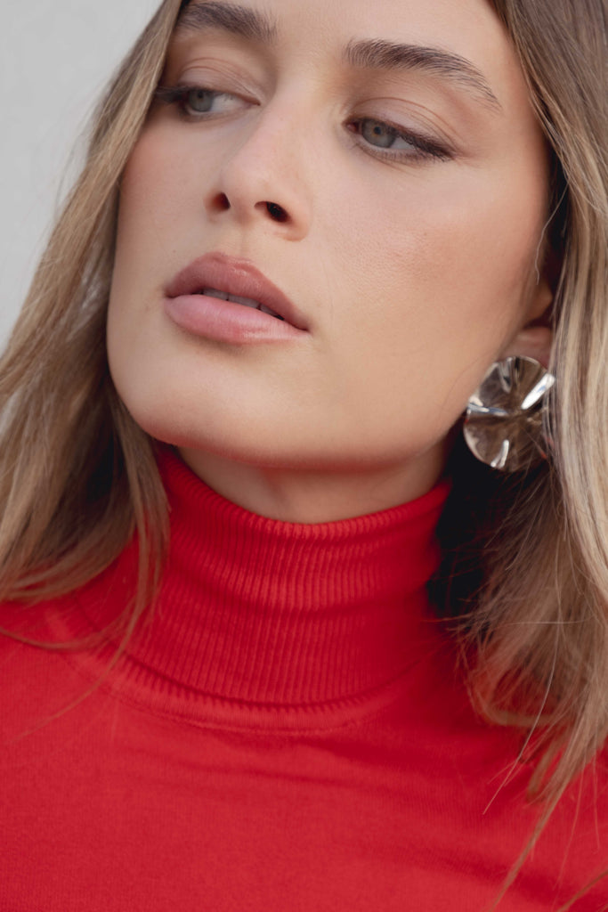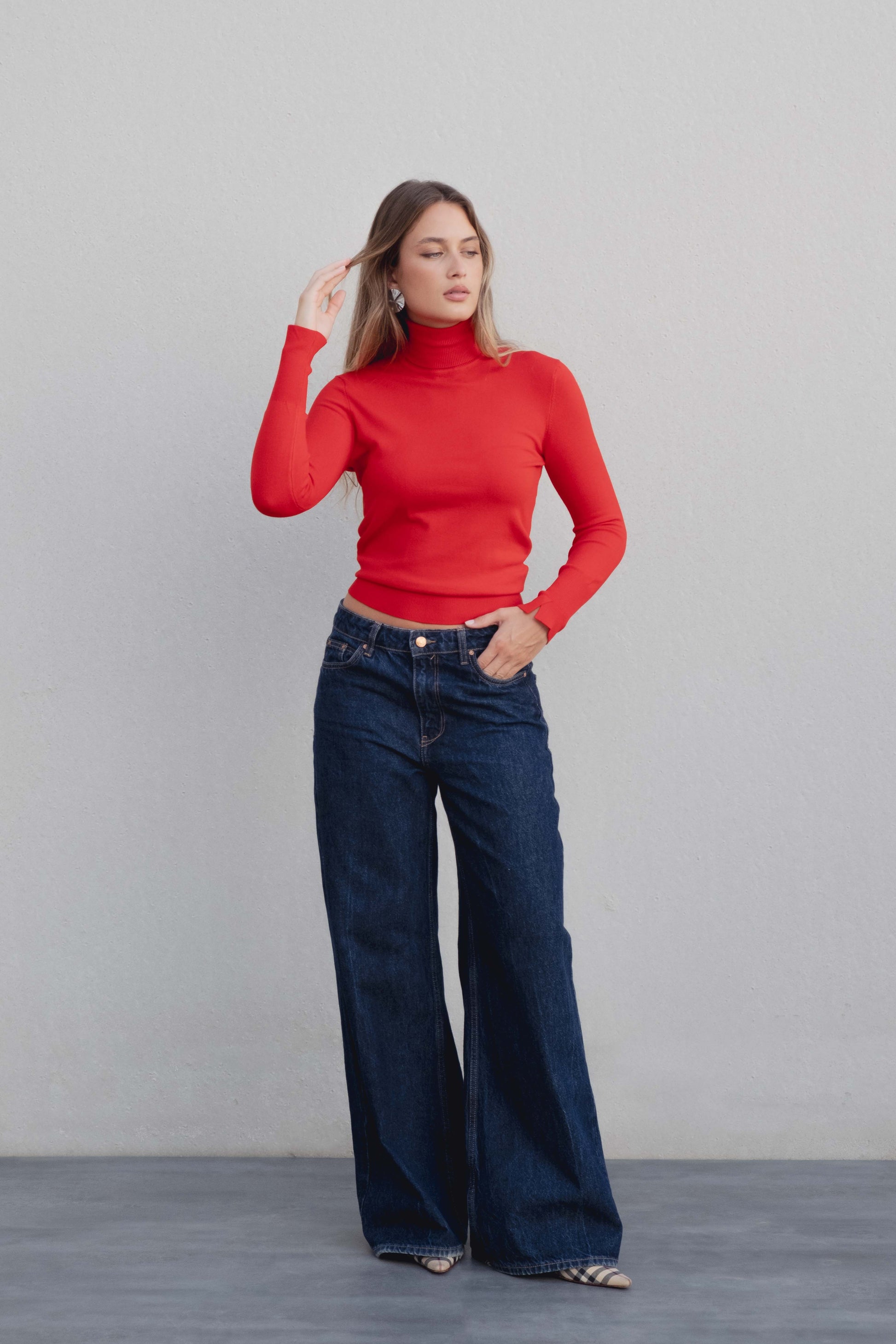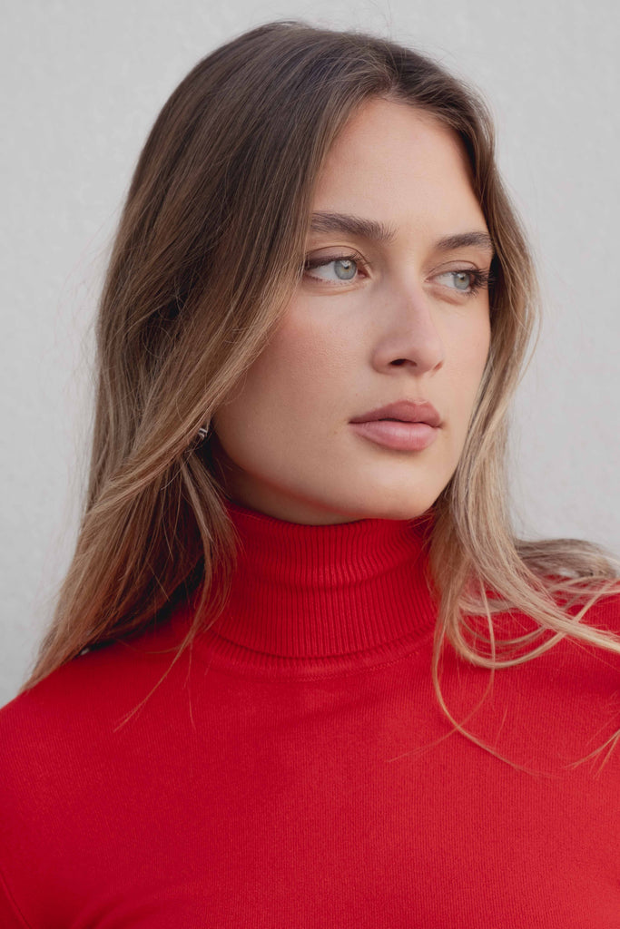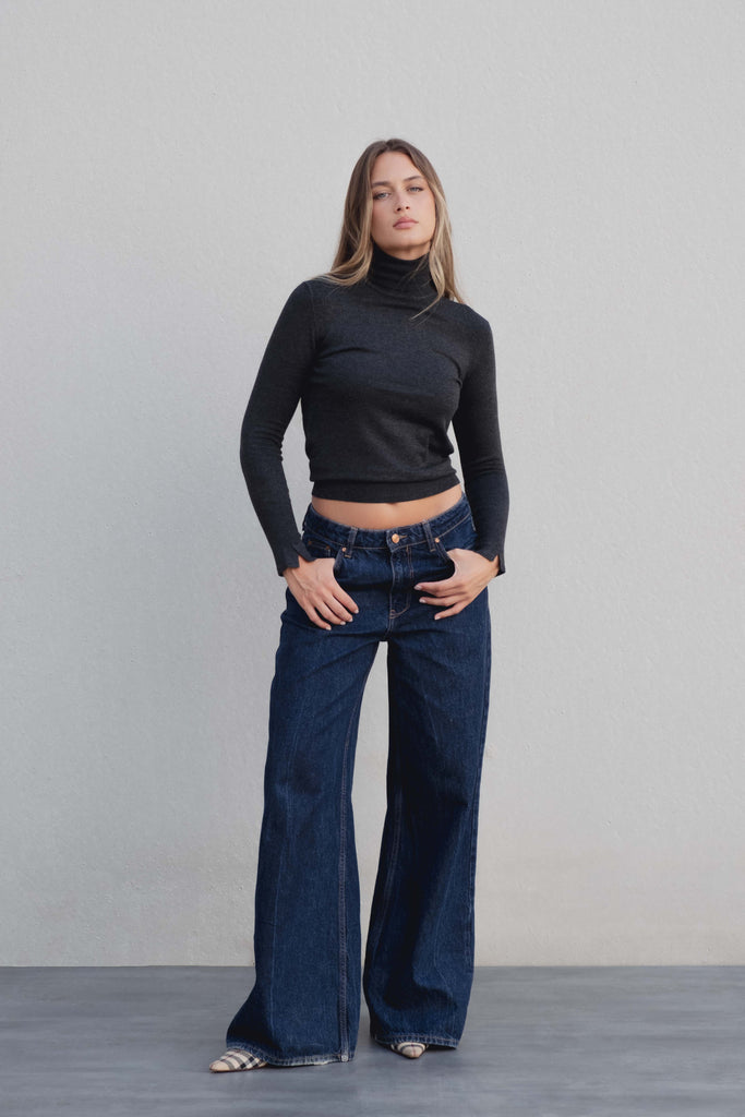 Suéter de gola alta e manga longa com pequena abertura nos punhos. Possui acabamento em rib, oferecendo um toque moderno e sofisticado..