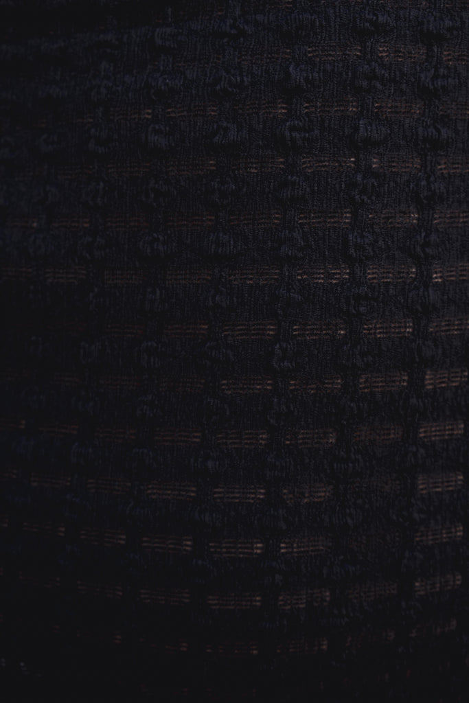 Vestido midi confeccionado em tecido de malha vazada, com decote redondo e sem mangas. Barra assimétrica, unindo conforto, estilo e modernidade em uma peça versátil.